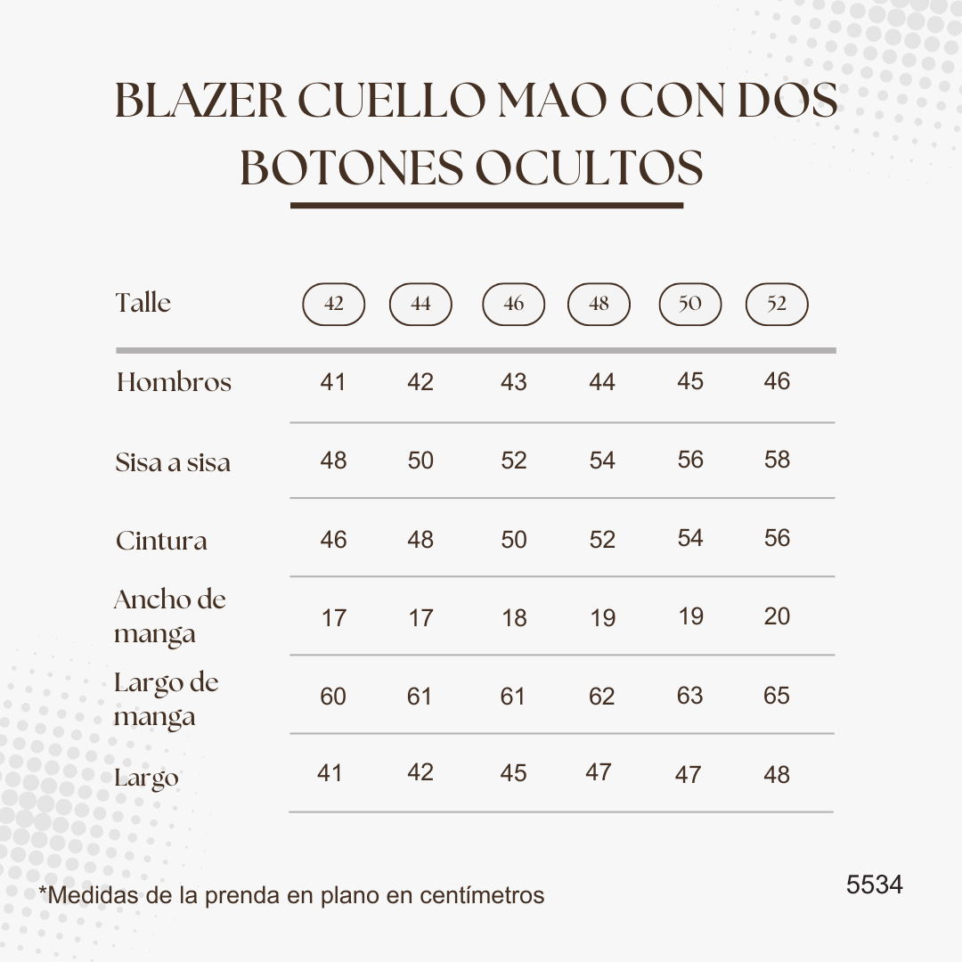 BLAZER CUELLO MAO CON DOS BOTONES OCULTOS DE SARGA
