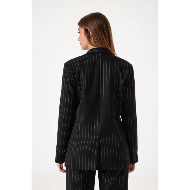 BLAZER SASTRERO MANGA ARREMANGADA DE SARGA RAYADO NEGRO