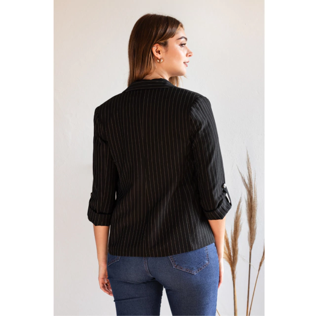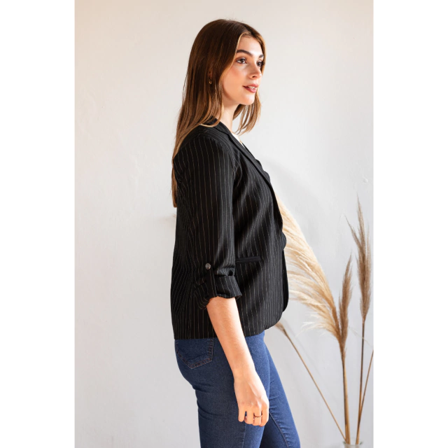 BLAZER SASTRERO MANGA ARREMANGADA DE SARGA RAYADO NEGRO