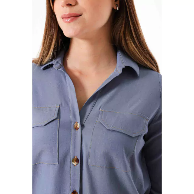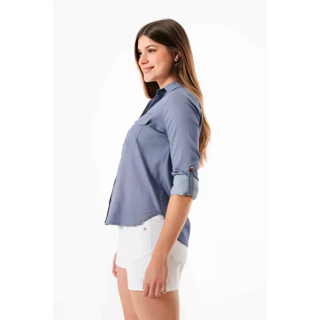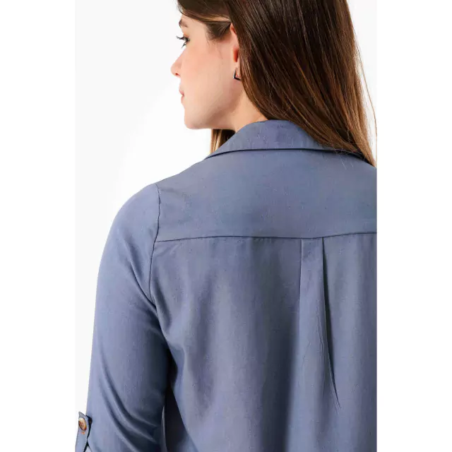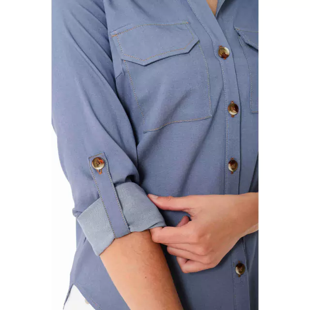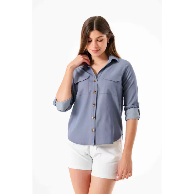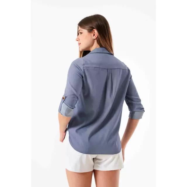 CAMISA MANGA ARREMANGADA CON BOLSILLOS SIMIL JEAN