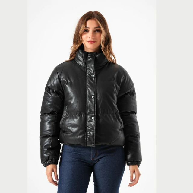 CAMPERA PUFFER CHAROLADA NEGRA
