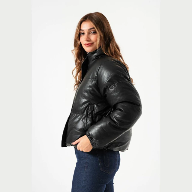 CAMPERA PUFFER ENGOMADA MILE NEGRA
