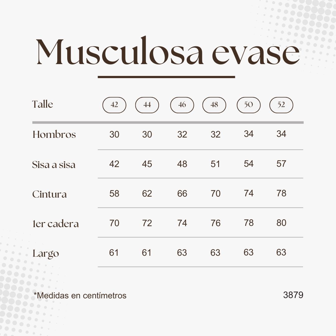 Las medidas de la prenda las verá a continuación.