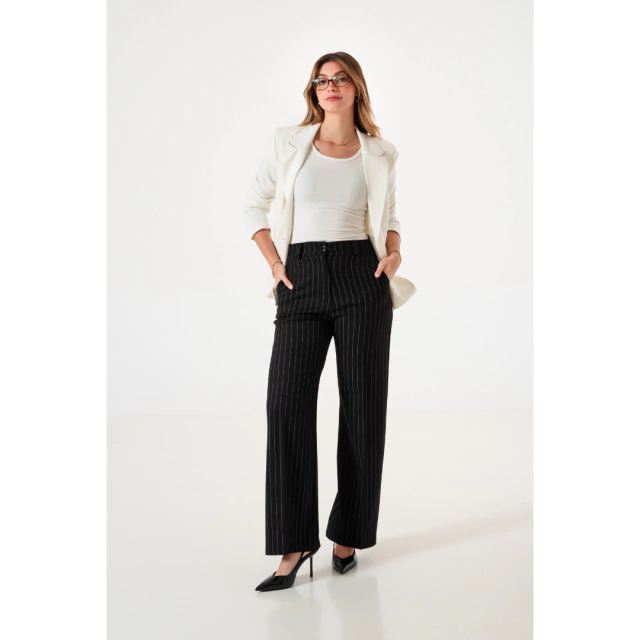 PANTALON PALAZZO PLAYERO CON CORDON DE HILO RAYADO