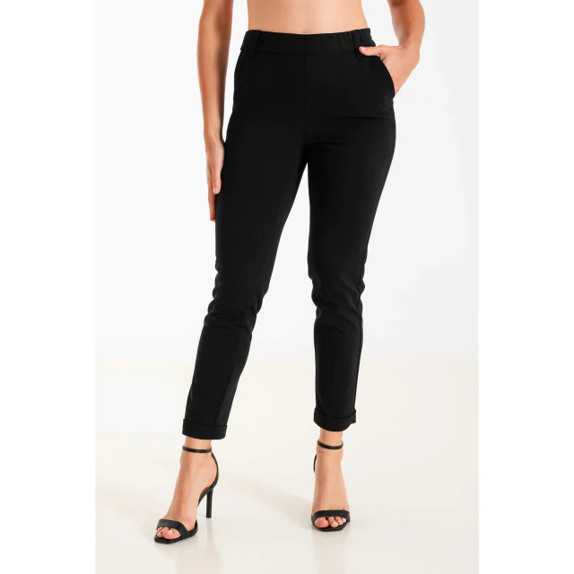PANTALÓN DE VESTIR CON ELÁSTICO EN CINTURA DE CREPE ELASTIZADO
