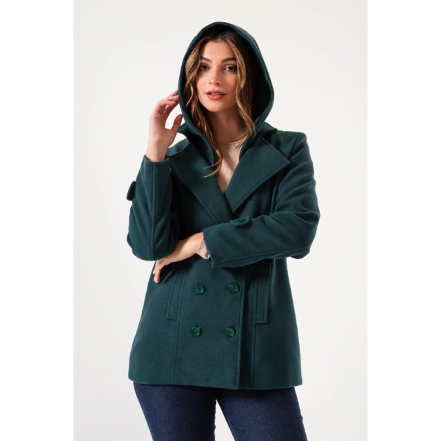 SACO CORTO CON CAPUCHA DESMONTABLE DE PAÑO ROJO
