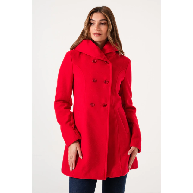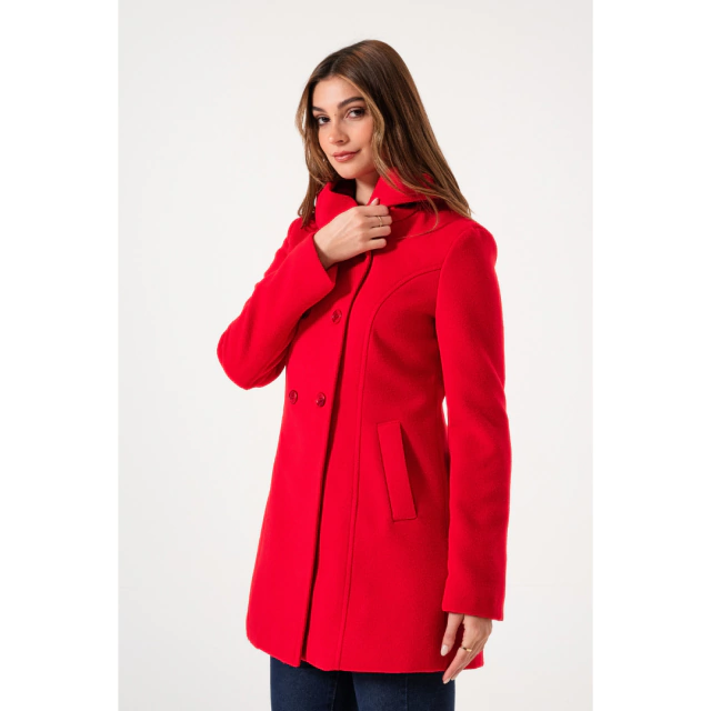 SACO CORTO CON CAPUCHA DESMONTABLE DE PAÑO ROJO