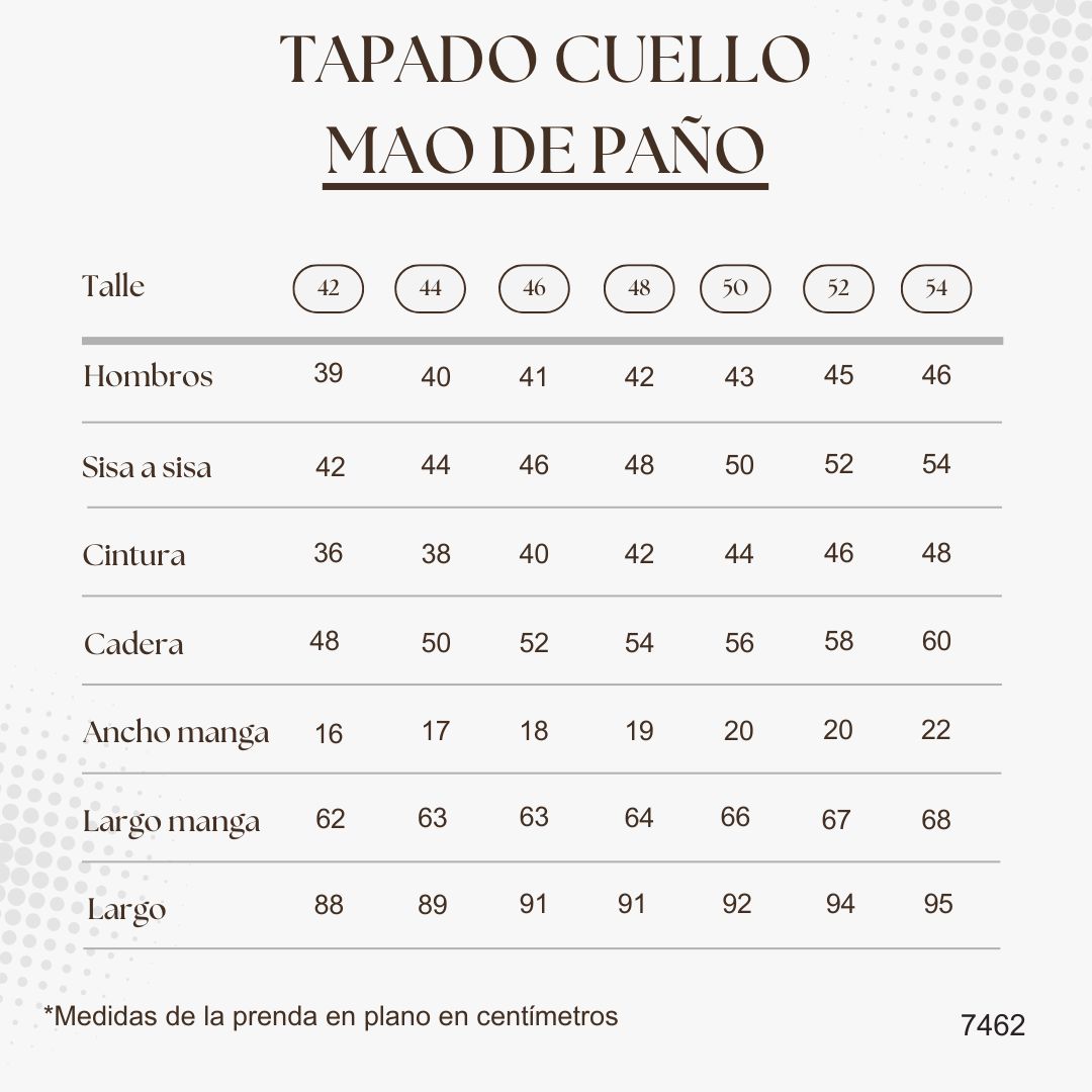 El tapado de paño, de silueta entallada y manga larga tiene un largo modular y recortes verticales que estilizan cualquier look que lo acompañe. Posee una martingala decorativa en la espalda y botones en sus mangas, y su interior está forrado con una tela a tono. Su cuello alto es perfecto para días fríos y es una prenda que no puede faltar en tu outfit
