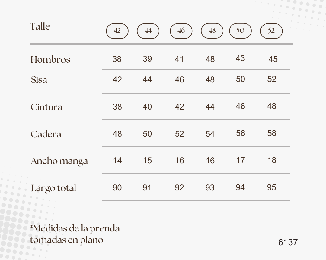 EL TALLE ENTRE PRENDAS PUEDE VARIAR. LEER LA TABLA DE TALLES DE CADA PRENDA ANTES DE ADQUIRIRLA